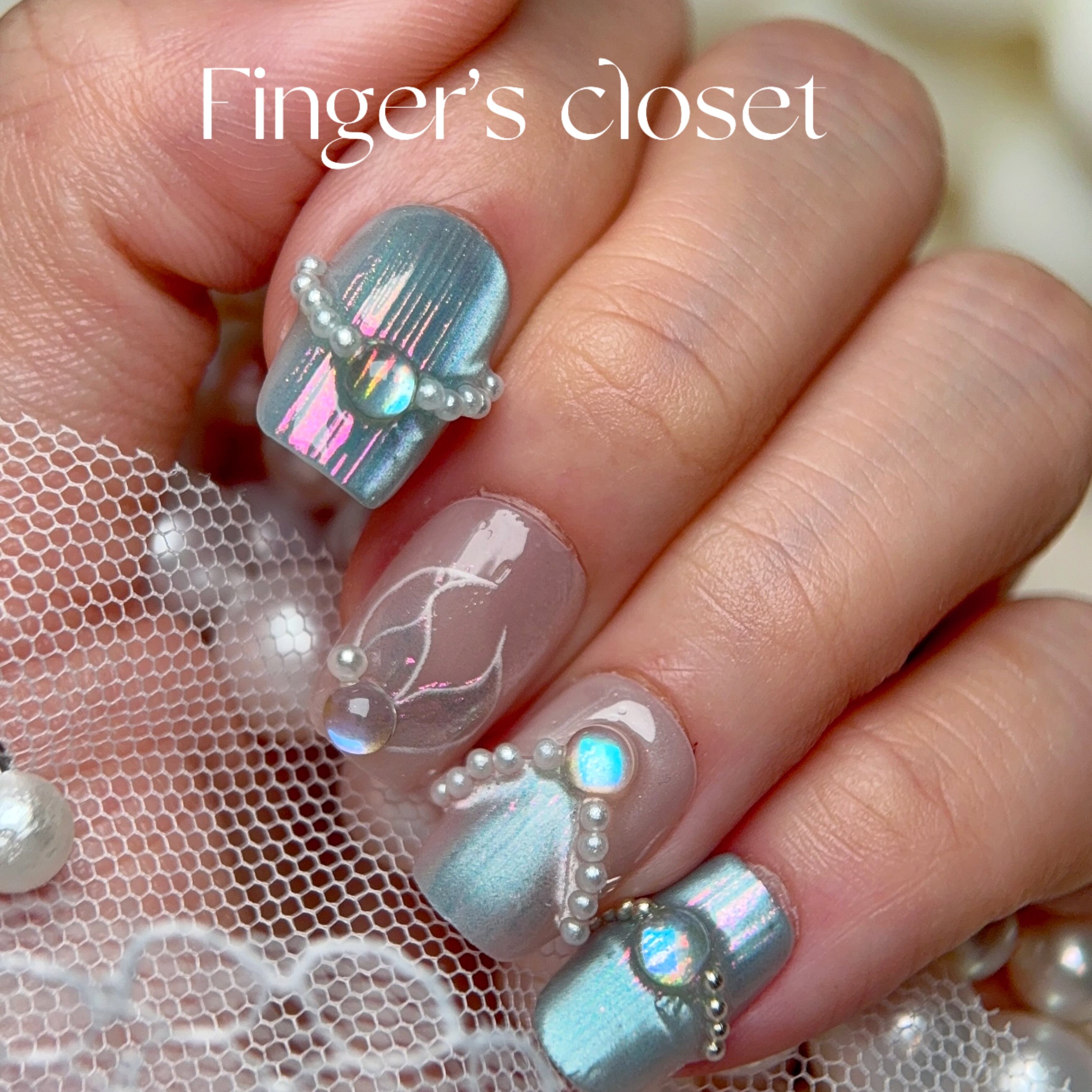 ぷっくりとしたアートや、上品なパールラインがアクセントになり、清楚さと華やかさを両立。特別な日にも日常使いにもおすすめです。