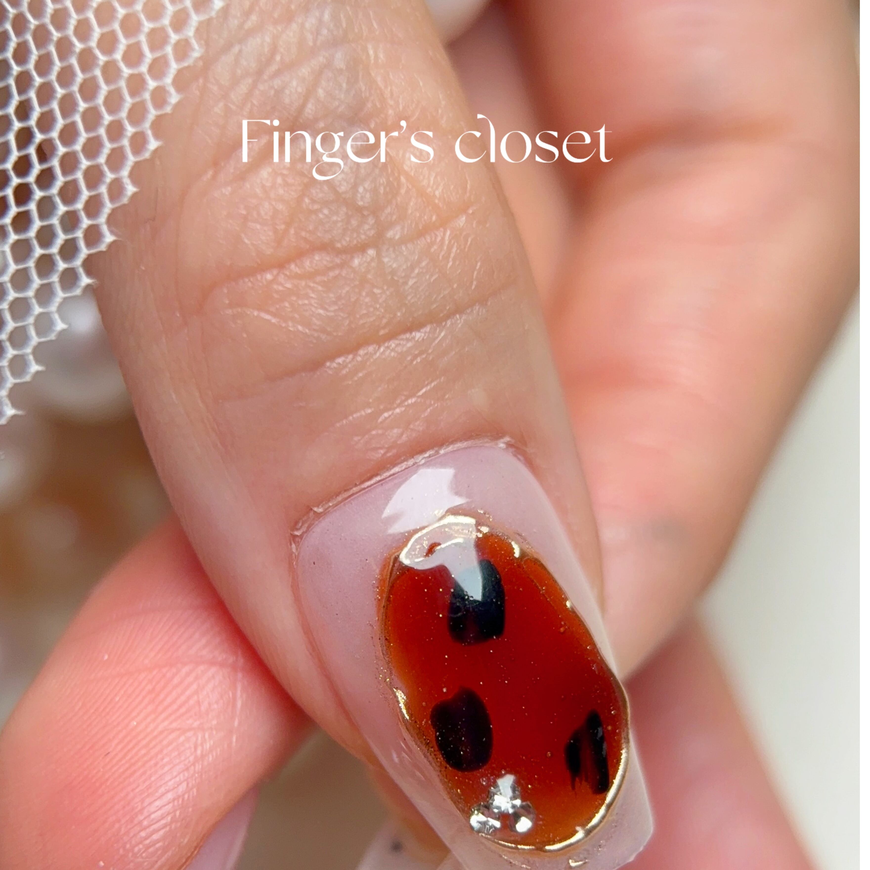 透け感のあるピンクベースに、艶感たっぷりのべっ甲模様がアクセント。