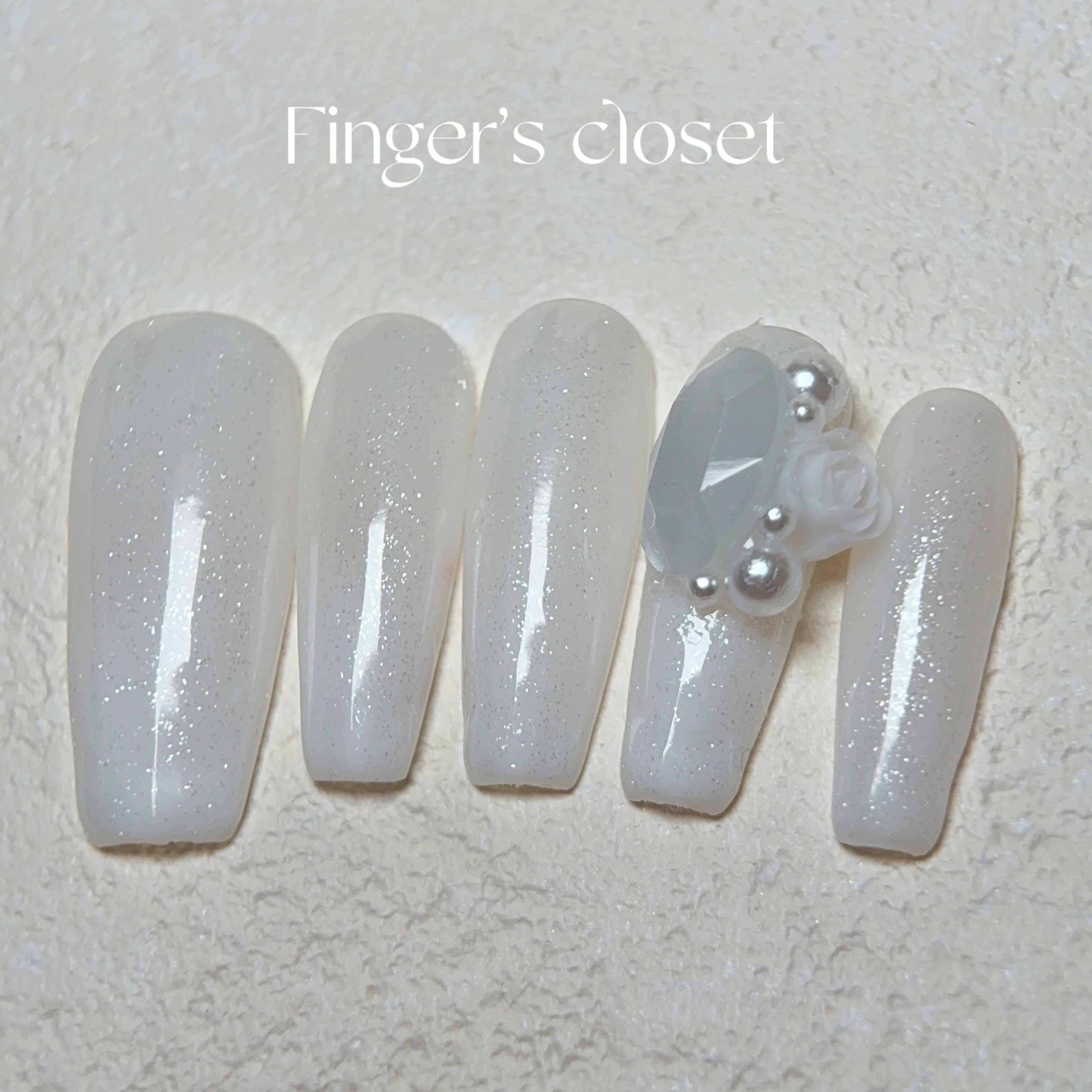 ミルキーホワイトの透け感と繊細な輝きが美しいネイルチップです。