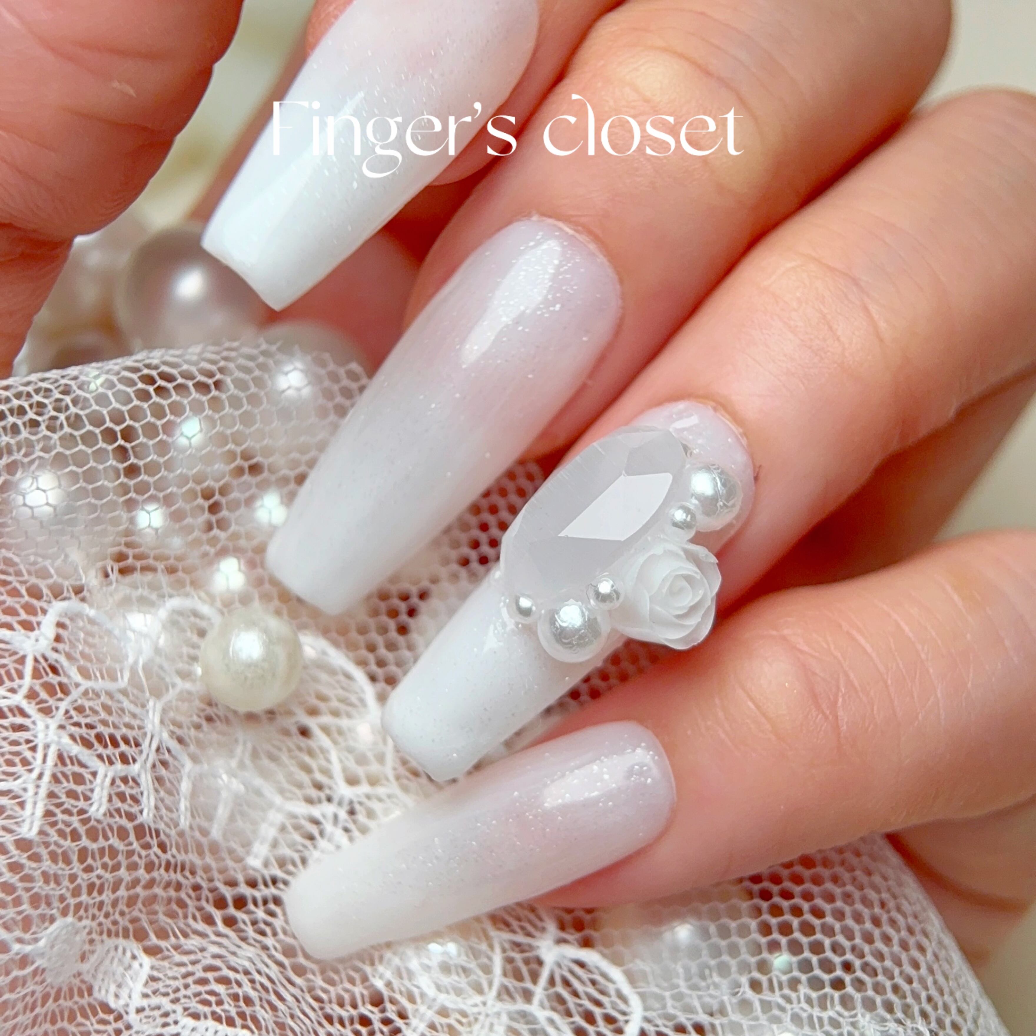 ミルキーホワイト×ローズ×パールビジューの上品ウェディングチップ|結婚式 成人式 卒業式 前撮り