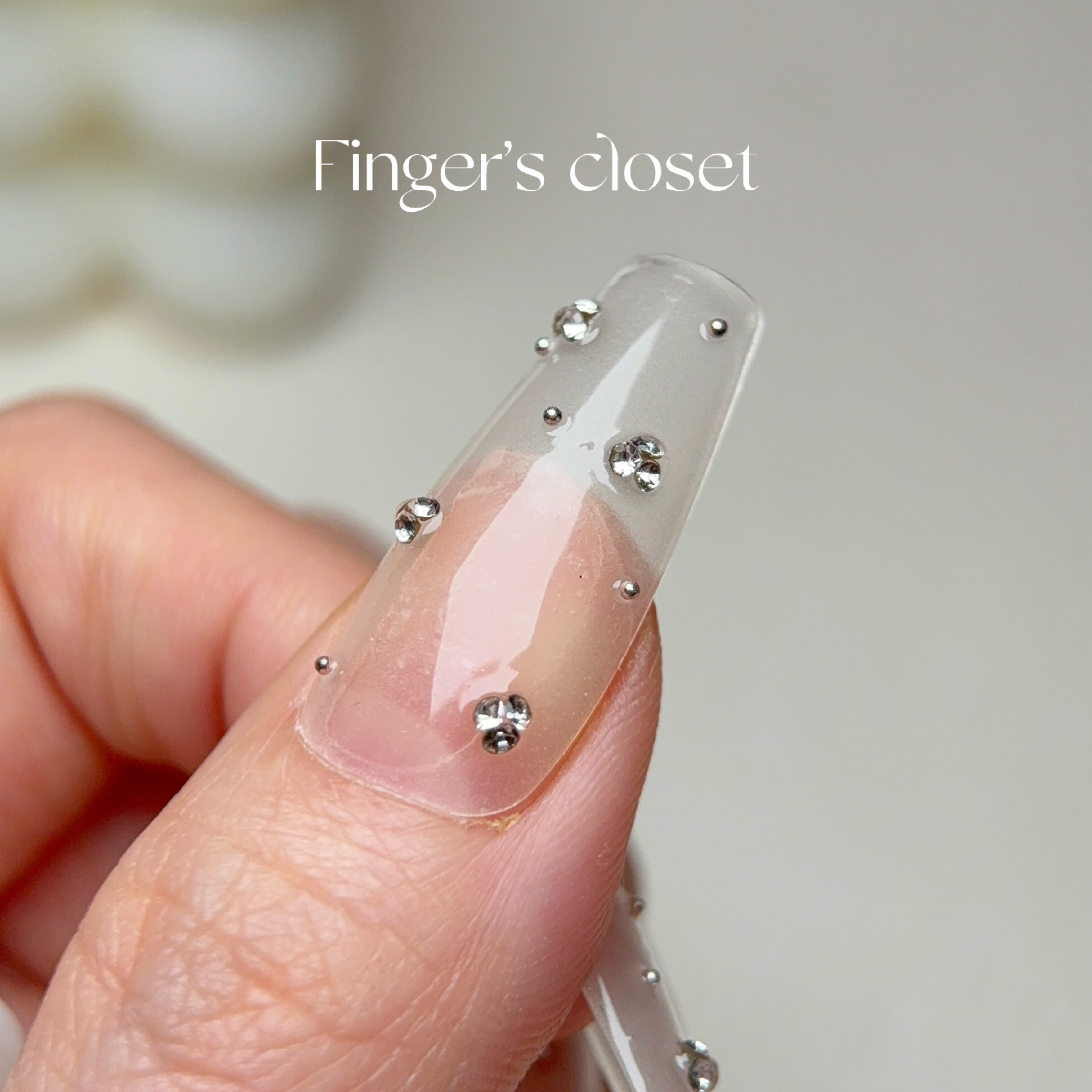 クリアネイルチップ クリアベース×シルバービジュー ドット風 韓国風シンプルネイル