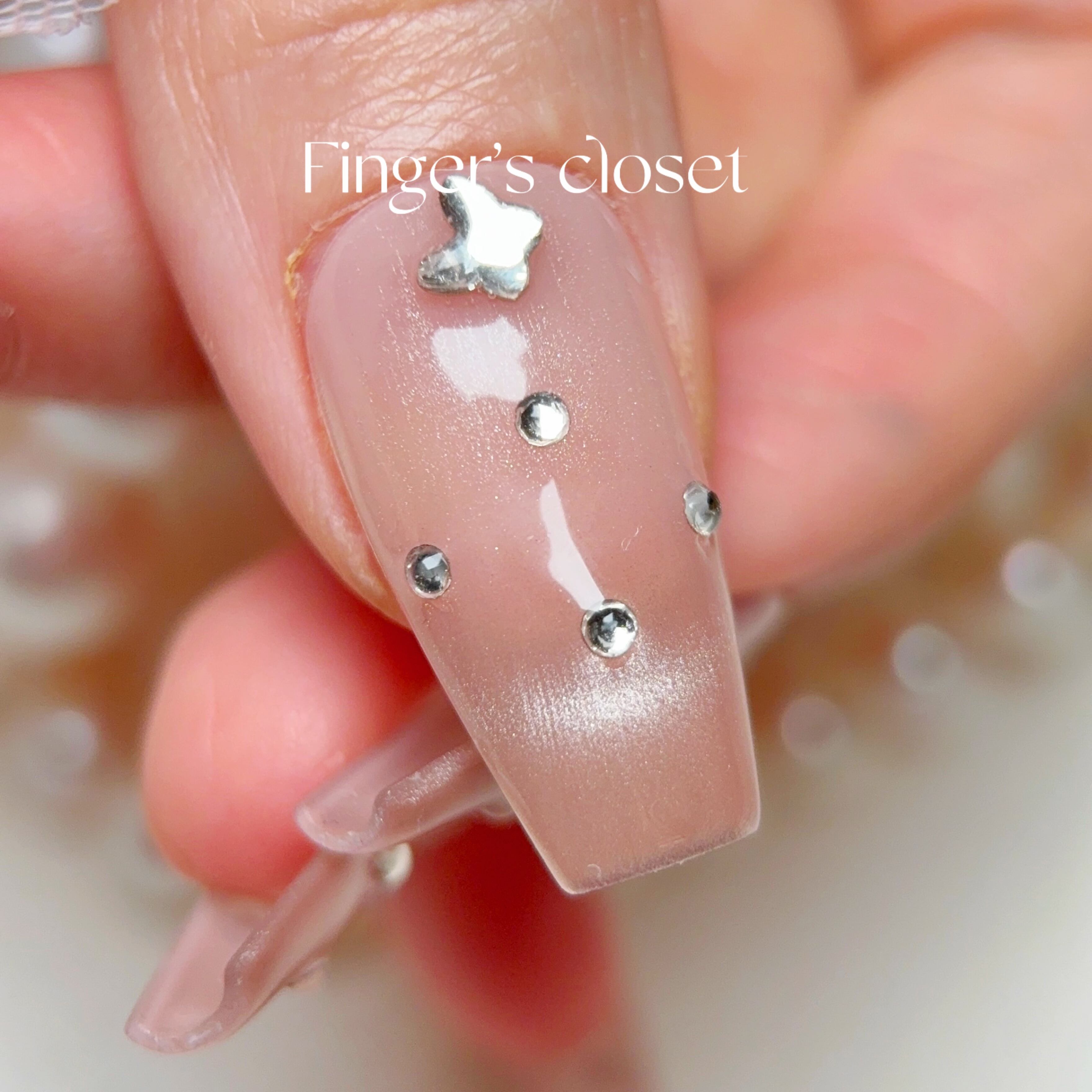 ミラーネイル風×バタフライパーツが可愛い大人上品ネイルチップ|韓国風ニュアンスネイル バレリーナ ハンドメイドネイルチップ ワンホンネイル