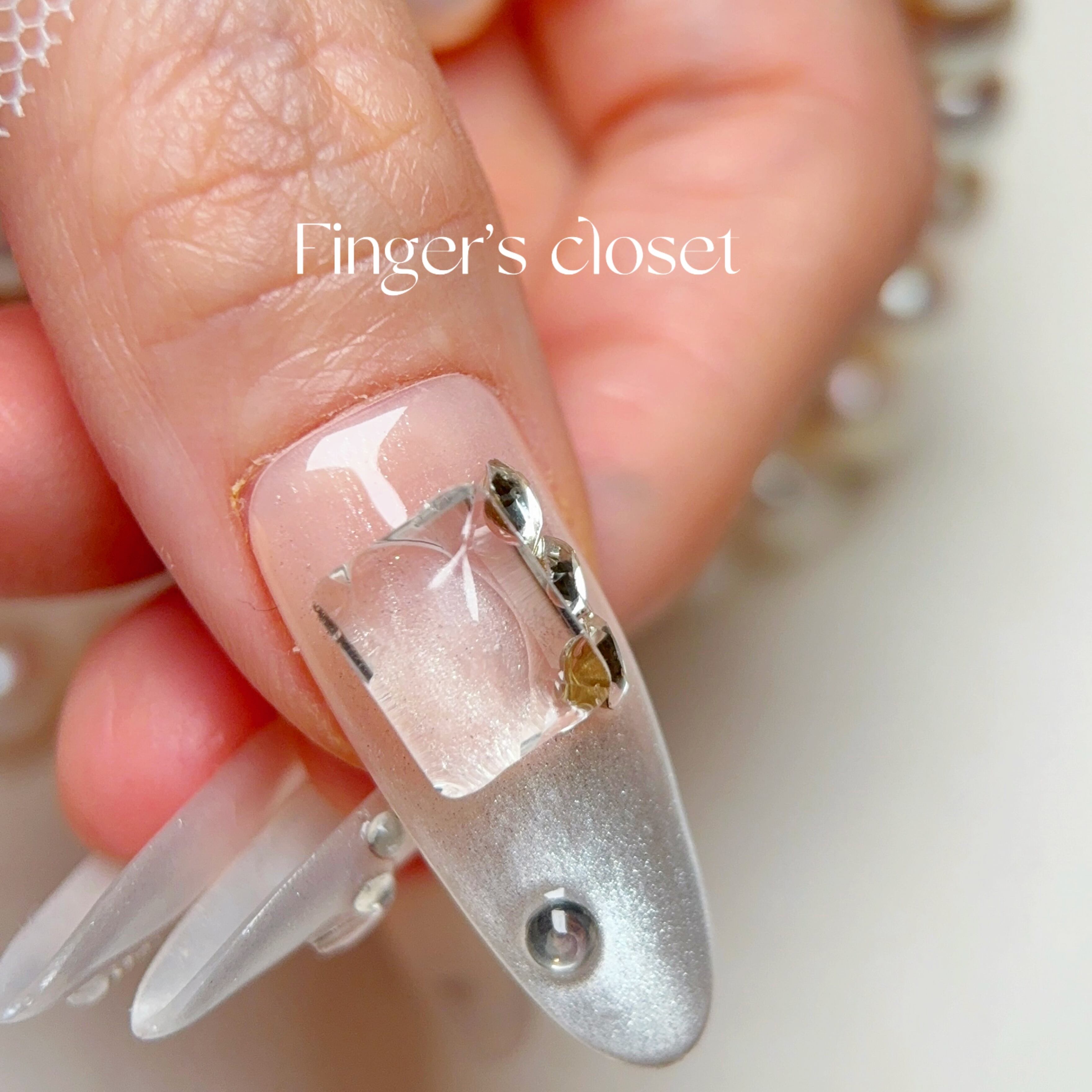 #ネイルチップ #グレージュネイル #マグネットネイル #ビジューネイル #シルバーネイル #韓国風ネイル #大人上品ネイル #イベントネイル #クリスタルネイル