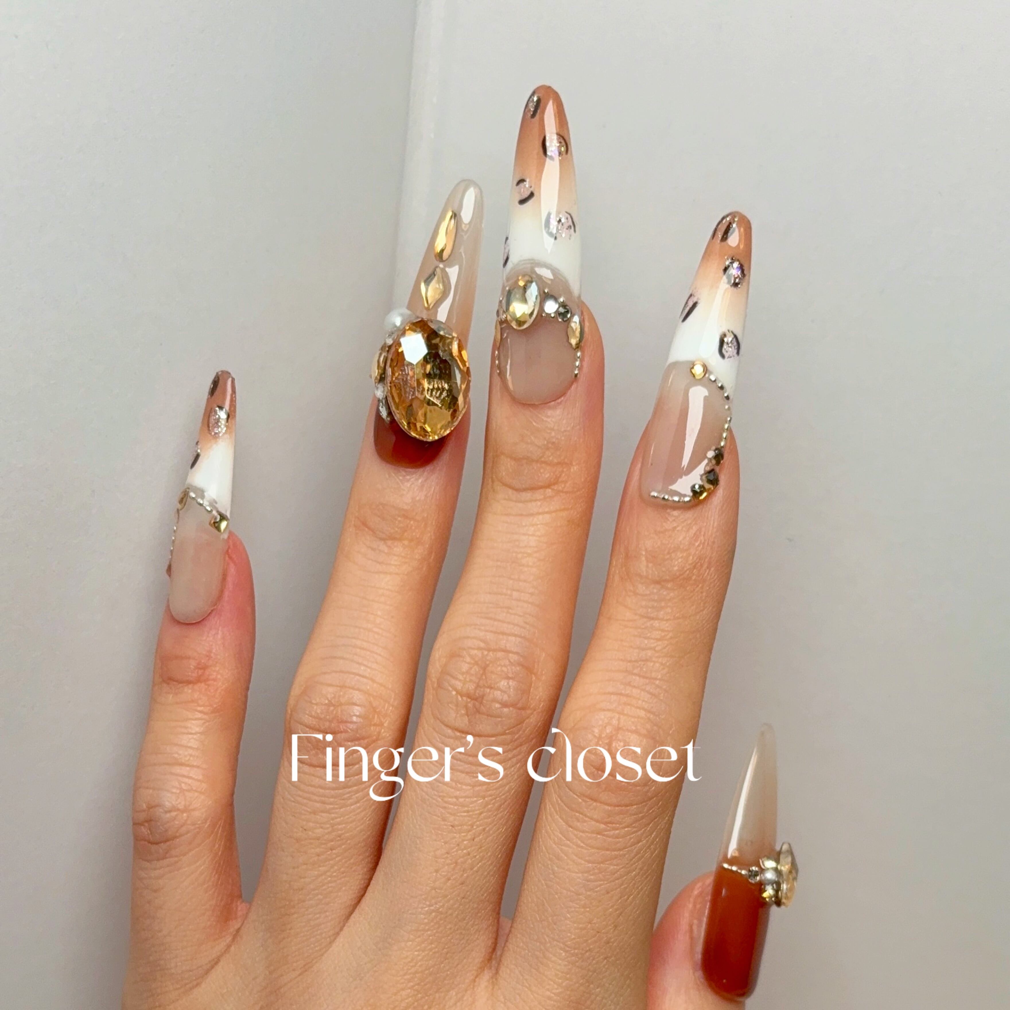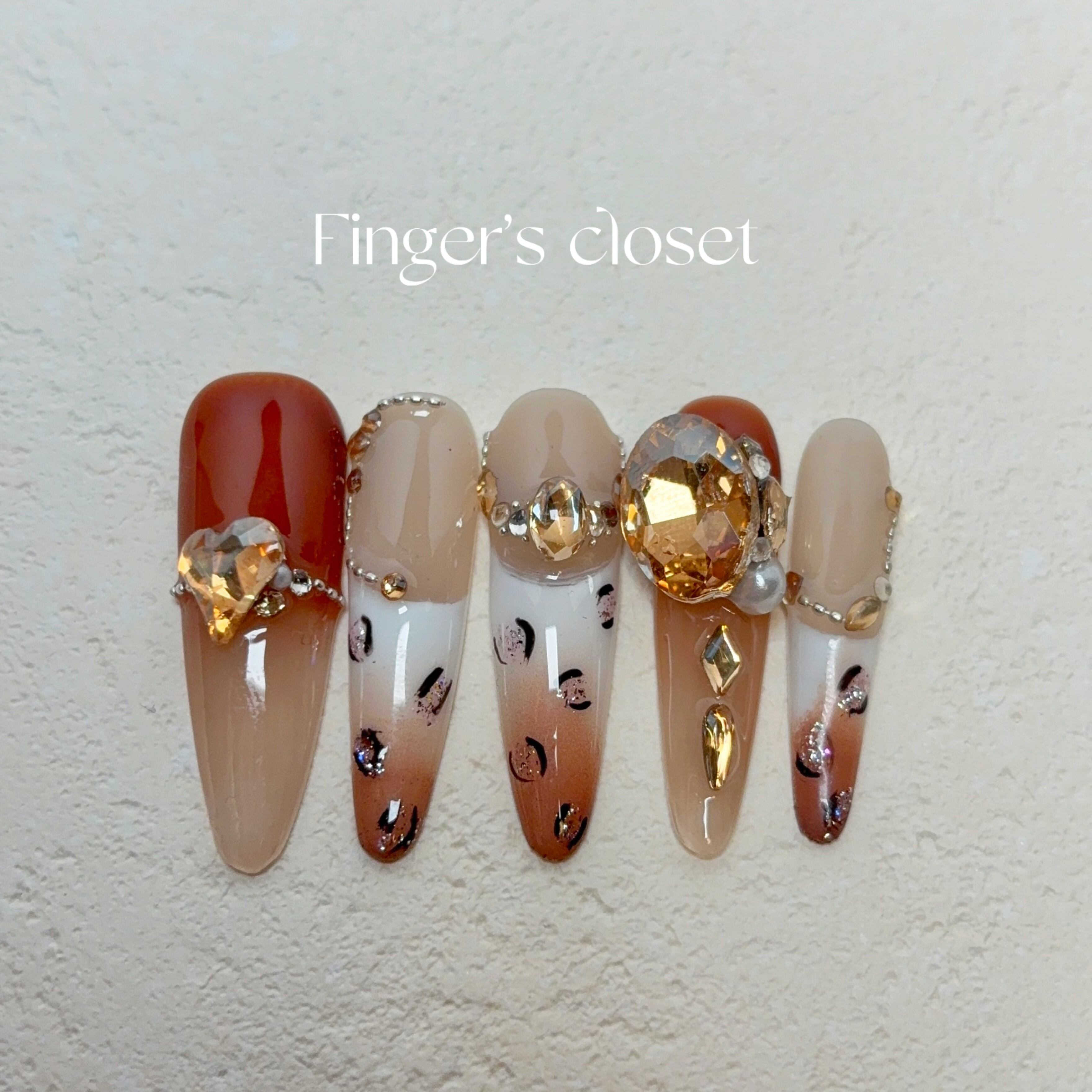 #ネイルチップ #ヒョウ柄ネイル #アニマル柄ネイル #大人ネイル #ビジューネイル #ベージュネイル #おしゃれネイル #指先コーデ #韓国風ネイル #トレンドネイル #Finger’scloset