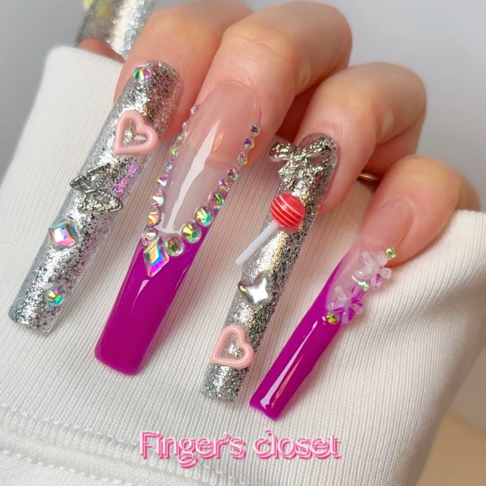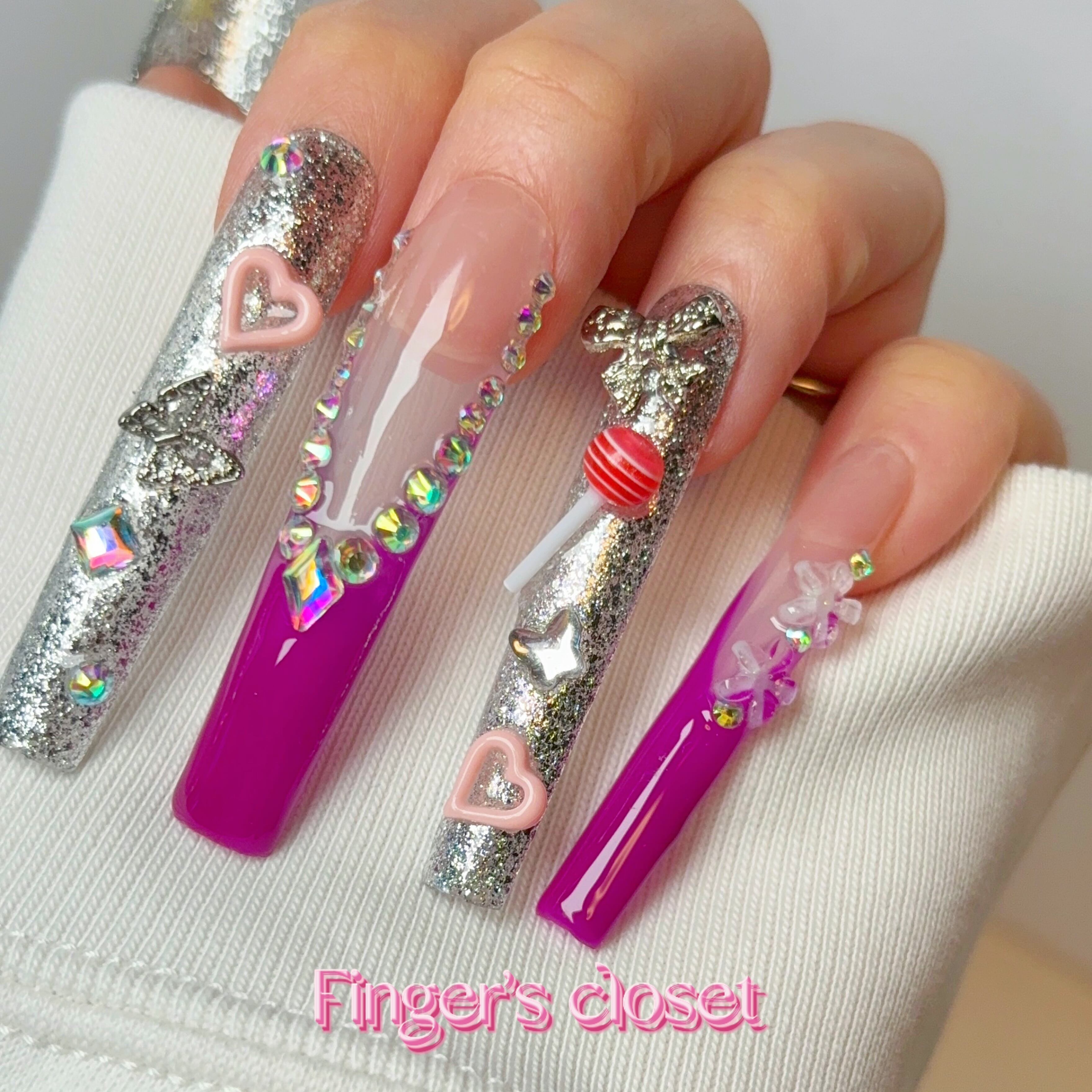 #スーパーロングネイル #韓国ネイル #量産型ネイル #地雷系ネイル #姫系ネイル #推し活ネイル #蝶々ネイル #パープルネイル