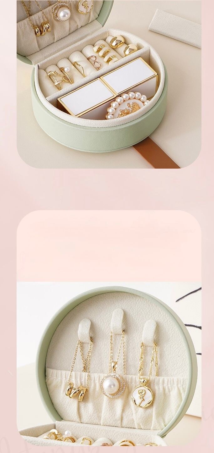 • 実用的な収納スペース:ネックレス、指輪、ピアスを分けて収納できる仕切り付き。絡まりを防いで使いやすい!